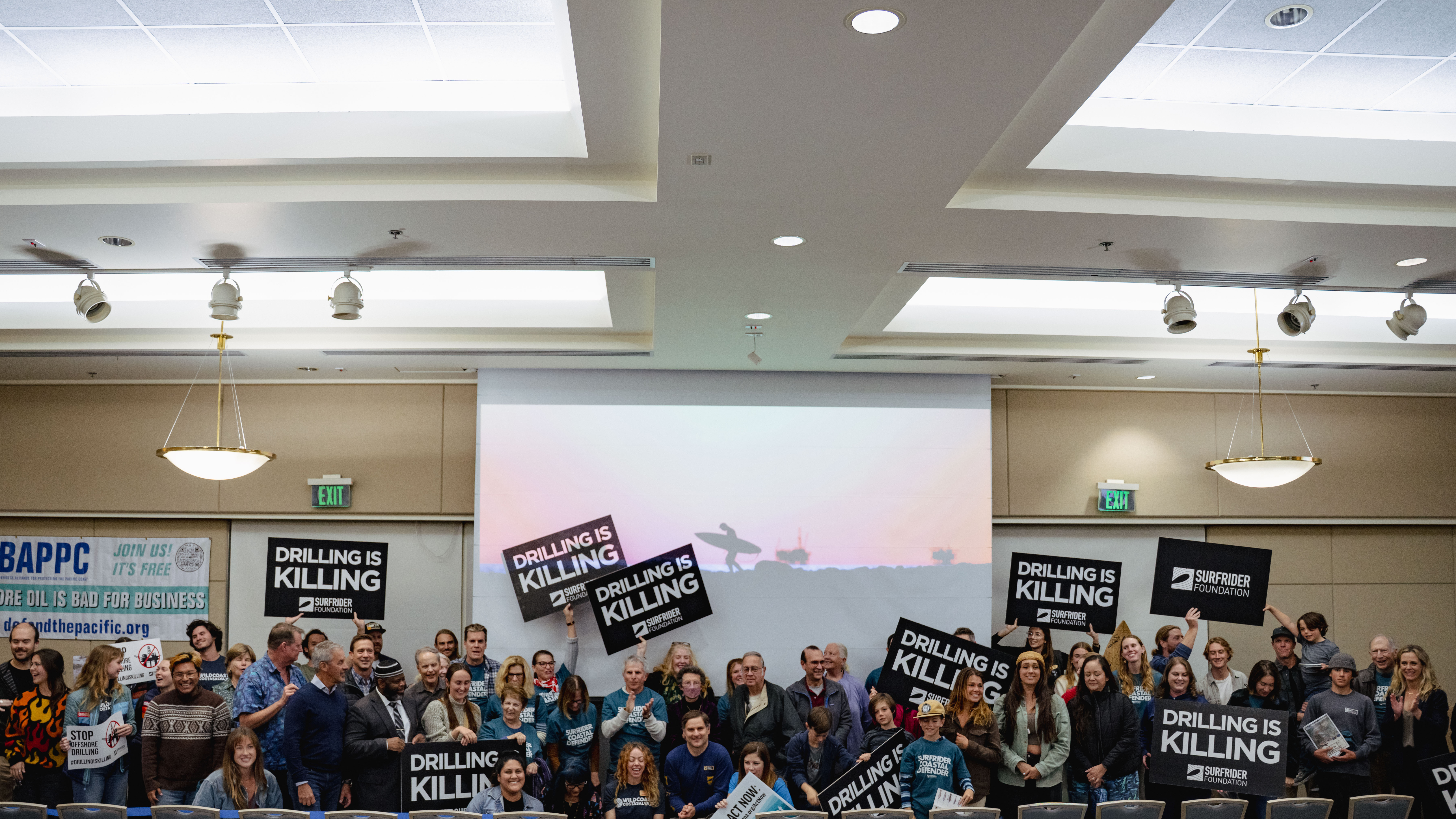 On the evening of Thursday, December 4, San Diego elected leaders, businesses, environmentalists, and community members spoke out loudly against the U.S. Department of Interior’s offshore oil and gas drilling proposal at a people’s hearing event in Encinitas. An estimated 175 people attended the event organized by the California Coastal Protection Network, Surfrider Foundation, Oceana, and Wildcoast.